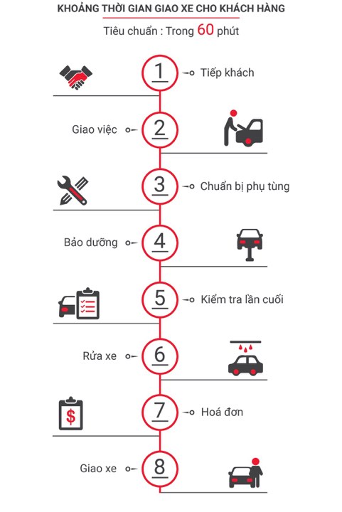 Dịch vụ BẢO DƯỠNG NHANH sẽ giúp Quí khách hàng hài lòng hơn khi thời gian chờ bảo dưỡng thông thường giảm từ 150 phút xuống còn 60 phút (tính từ khi lệnh sửa chữa được ký cho đến lúc nhận lại xe).