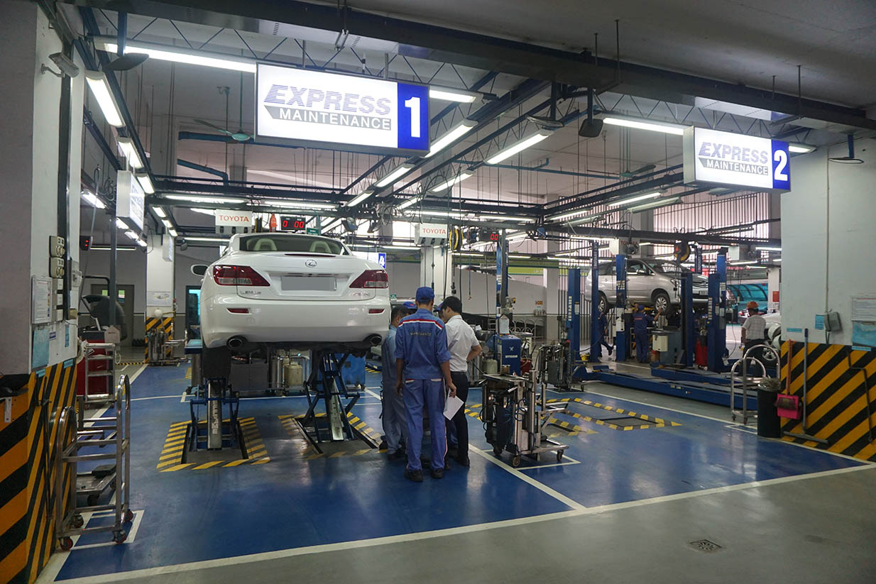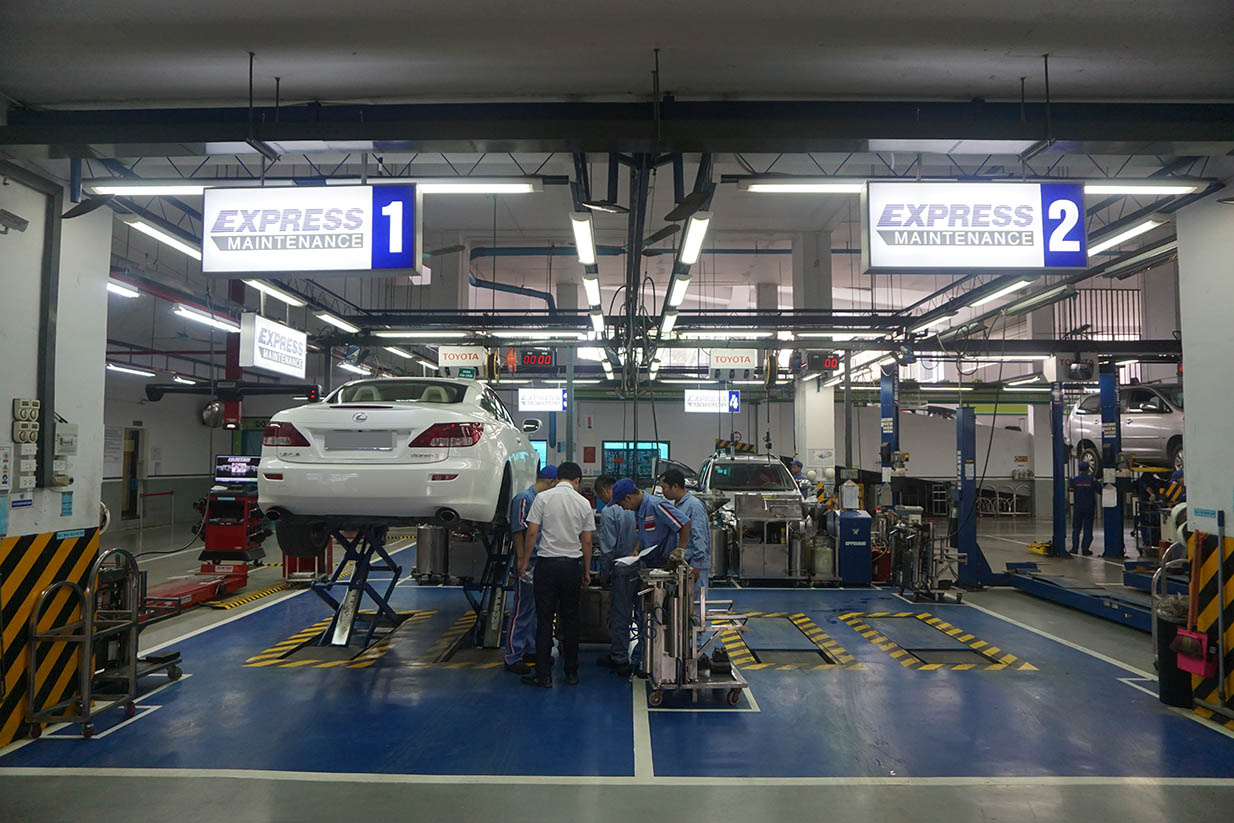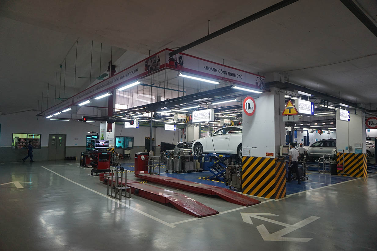 Để cung cấp Dịch vụ BẢO DƯỠNG NHANH theo đúng quy định của Toyota Việt Nam, Toyota Pháp Vân đã đầu tư trang thiết bị cơ sở vật chất kỹ thuật tiên tiến, trang bị khoang bảo dưỡng nhanh những thiết bị chuyên dùng, hiện đại, thiết lập quy trình làm việc BẢO DƯỠNG NHANH theo tiêu chuẩn (sắp xếp, phân công công việc theo đúng quy trình, giảm thiểu tối đa các động tác thừa của nhân viên kỹ thuật trong thao tác làm việc), đồng thời liên tục thực hiện việc đào tạo nâng cao trình độ cho đội ngũ kỹ thuật viên nhằm đảm bảo cung cấp được dịch vụ tốt mang tới sự hài lòng cao nhất cho Khách hàng.